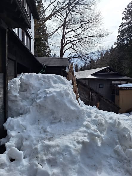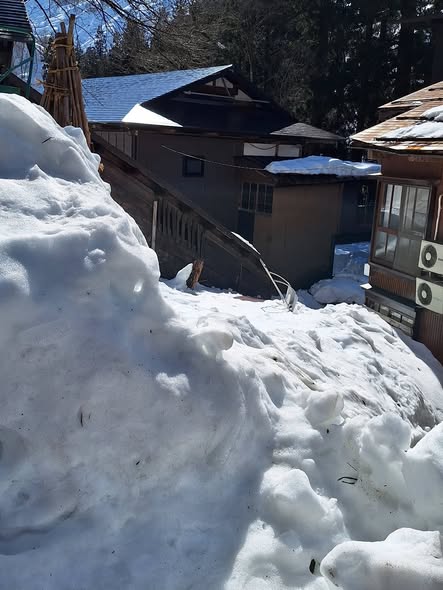 雪山に刺さる、スノーダンプは、春の兆しです。
